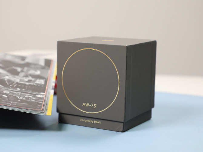 惠威AW-75的外包装采用了灰色的硬质纸盒包装,正面是烫金的圆环和AW-75标识,做工非常不错,从上而起的抽拉式设计,仪式感满满,就好像是打开一件精心准备的礼物一样。