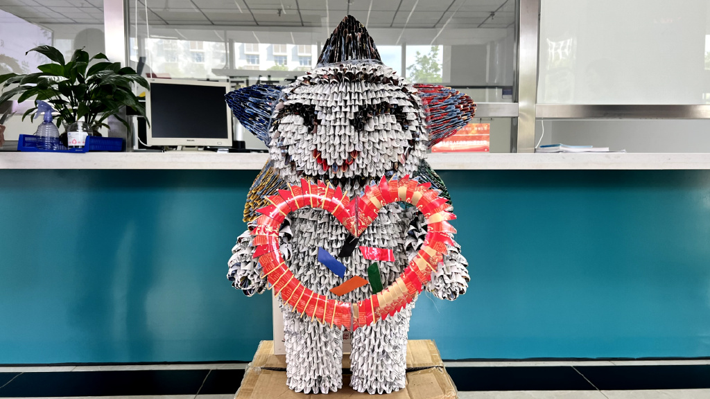 一张张承载着中华民族文化和新时代发展方向的即开型体育彩票,在我们这些可爱的参赛者手里,变成栩栩如生的天鹅、战疫英雄终南山、一条蜿蜒的巨龙、甚至是我们的吉祥物乐小星,每一件作品都不是用一张而是用成百上千张废旧即开型体育彩票剪贴、拼插而来,一张体育彩票的能量或许微小,但千千万万张体育彩票的公益金汇聚起来,微光便汇聚成一片星海。