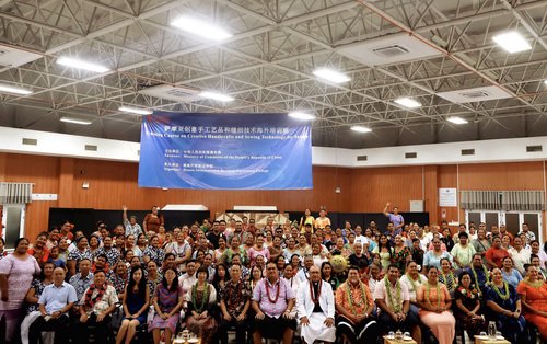 2025年12月18日,第四期援萨摩亚创意手工艺品和缝纫技术海外培训班结业式在萨妇女青年活动中心举办。驻萨摩亚大使费明星和萨妇女、社区与社会发展部部长莫法阿乌乌出席并致辞,湖南外贸职业学院专家组及参训学员、联合国妇女署、联合国计划署代表等120余人参加。